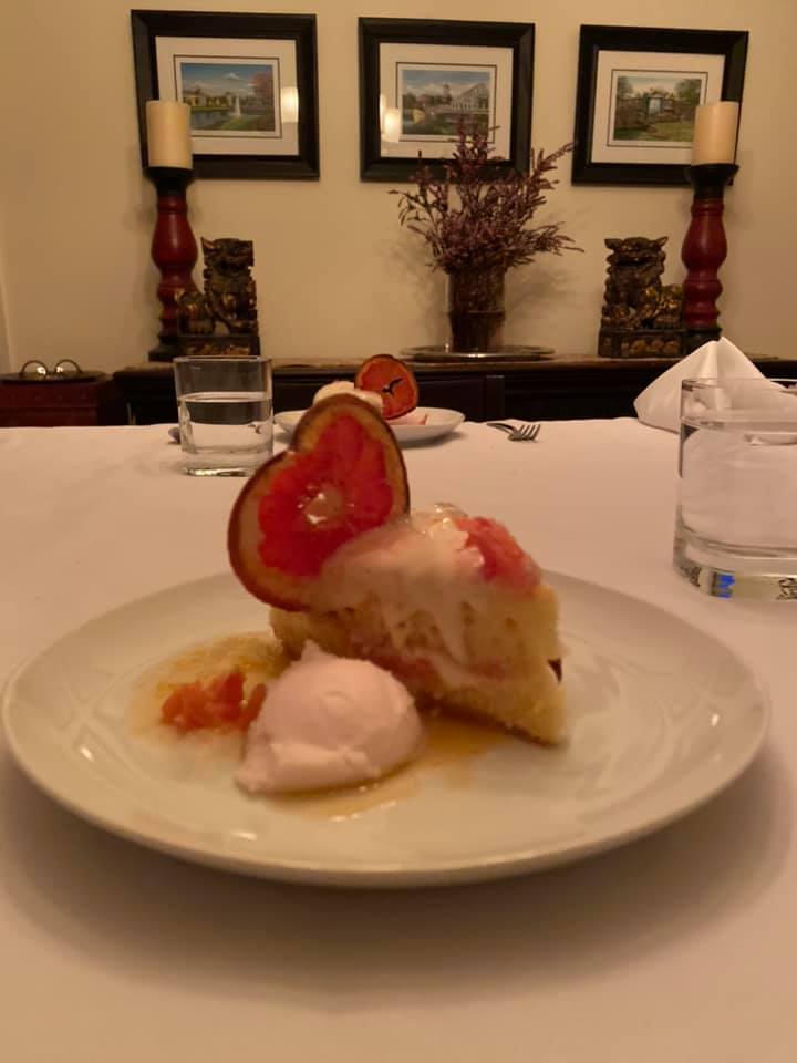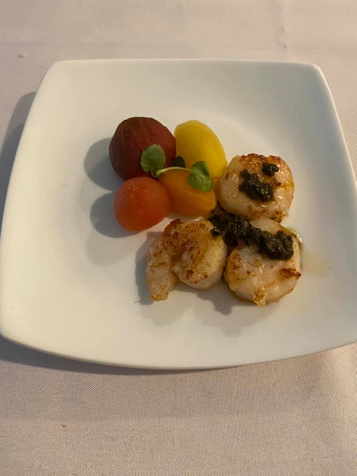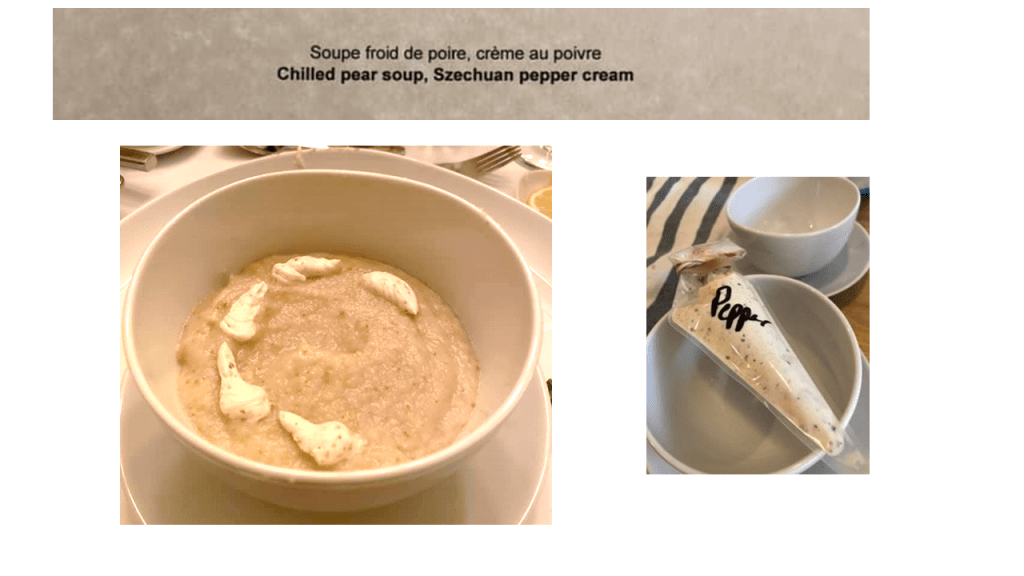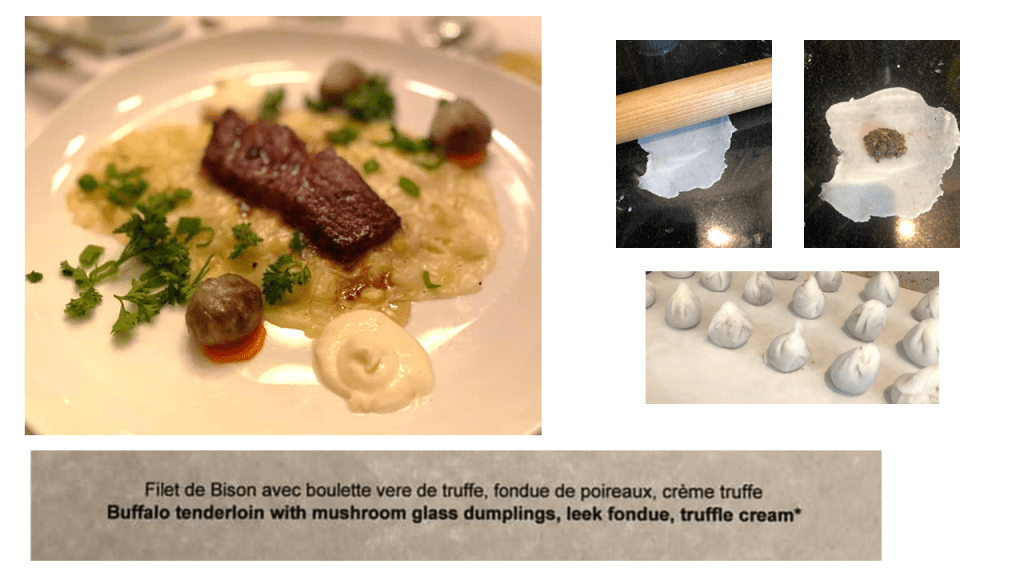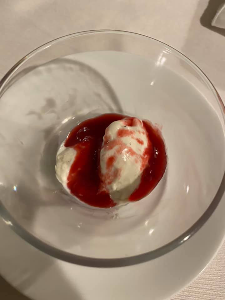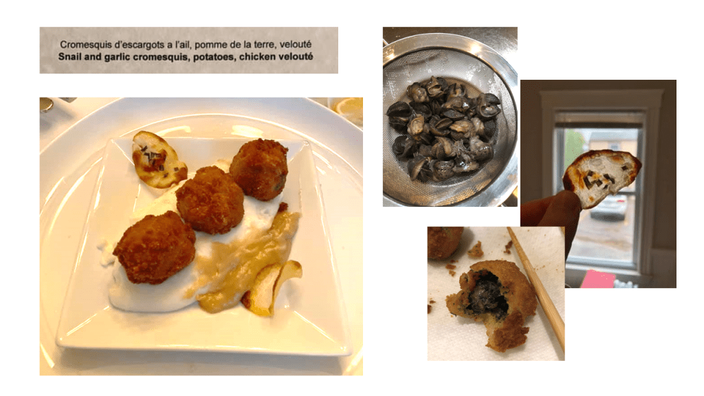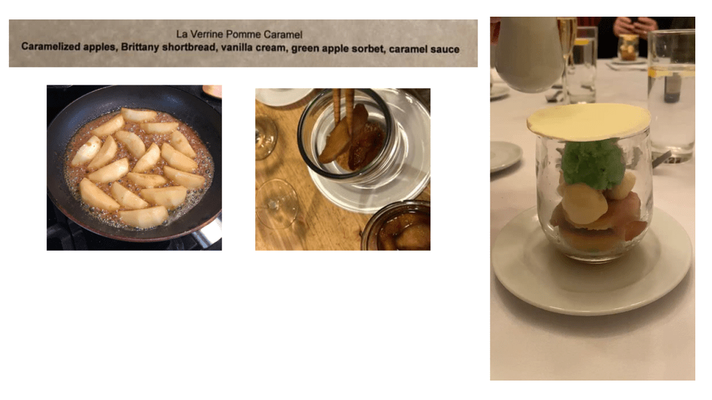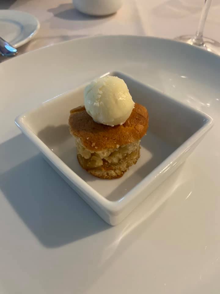 Amuse-Bouche: Green Apple Baba with Sour Cream Ice Cream You may know Baba from Baba au rhum, or Rum Cake, a yeast-risen cake baked in a mold, then soaked in a hot rum syrup. For this one, I went with this recipe (which ended-up being super-delicious – when we recovered the next day, this was the first thing Sean wanted more of). I didn’t have the canelé molds typically used, so I baked it as a sheet cake and used a biscuit cutter to make individual cakes (hence the leftovers). I can’t find the exact recipe I used for the Sour Cream Ice cream, but there are a lot out there for you to find, especially on Keto sites. I do not have an ice cream maker, so I made the mixture and poured it into a quart sized zip top bag. I put the sealed quart bag into a larger gallon sized bag filled with ice and rock salt. I then shook shook shook it as I danced around the house. When the mixture started to thicken, I put the small bag in the freezer to firm-up. When the ice cream was firm, I used a small melon-baller scoop to create mini scoops and put them back in the freezer to firm. When it came time for dinner, I warmed the cake and topped it with the tiny ice cream ball.