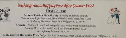 THE DREAM If you’ve been with me from the beginning of this series, you know what is coming next – the inspiration, the original gift idea, and the bankroll for the entire month: Victoria & Albert’s at The Grand Floridian Resort & Spa. I had scrimped and saved about $1200 US in extra cash over the two year planning of our original trip so that we could comfortably eat at Victoria & Albert’s without worrying about the bill. I used every bit of that extra money for this month long celebration to buy the ingredients for all eight meals (that’s 29 courses!), a table cloth, six cloth napkins, eight bottles of wine, twelve gifts (bought and handmade), four bouquets of flowers, and dozens of cards. I didn’t keep a tally of what the whole month cost, but when I was done, there was only ~$5 left, and I don’t remember dipping into any other sources. I wish I had documented all of the expenses. If I were to guess, Kona Cafe would have been the cheapest to recreate, and Victoria & Albert’s would definitely be the most expensive, given the number of ingredients I had to special order.