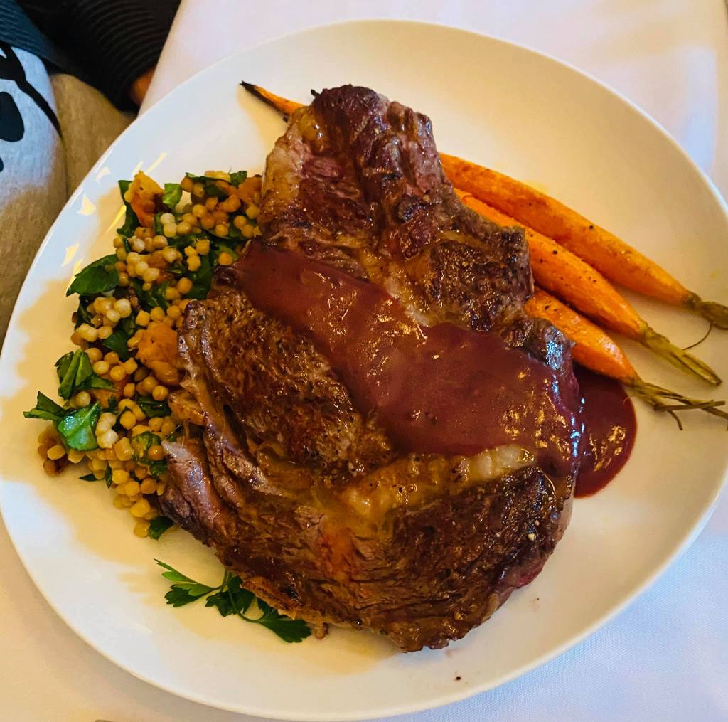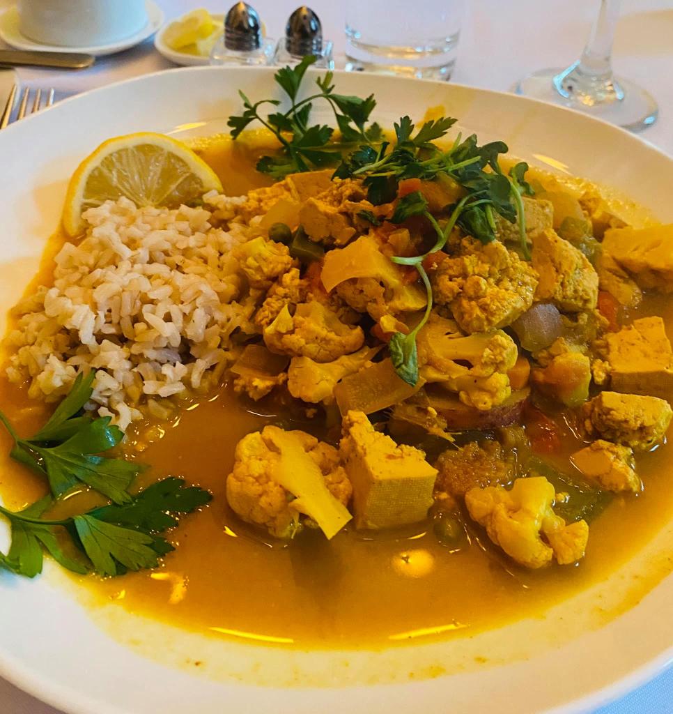 Bo Kaap Malay Vegetable Curry: Tofu, Seasonal Vegetables in a Rich Coconut Curry Sauce, Brown RiceBone-in Grilled Rib-Eye with Hibiscus Glaze, Roasted Carrots, Toasted Couscous Salad